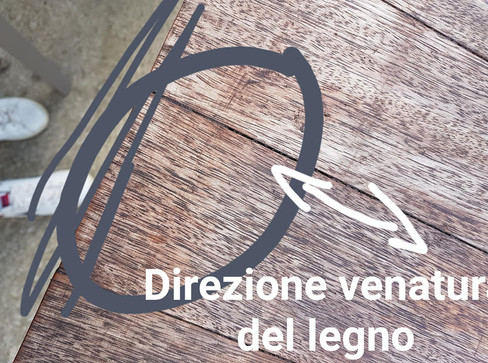 È importante per la buona riuscita del vostro lavoro, qualunque esso sia (l'uso della carta vetrata, piuttosto che di un pennello o una pialla...) che seguiate la direzione della venatura del legno (in bianco nella foto in basso a sinistra). Altrimenti si formeranno delle antiestetiche righe trasversali (in basso sempre, nel cerchio in grigio).